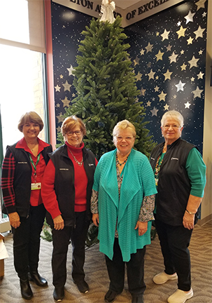 Officers of the Sparrow Eaton Hospital Auxiliary showcase the “Tree of Love” in the hospital lobby.