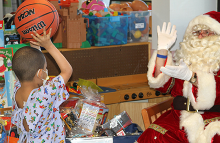 Santa and his helpers met the kids in the play room and then went door to door delivering presents to those unable to leave their room.
