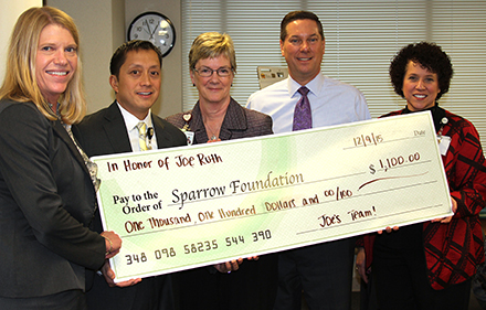 During a recent meeting, the Leadership team that reports to Joe Ruth, Sparrow’s Executive Vice President and Chief Operating Officer, surprised him with a donation to the Sparrow Foundation in his honor.