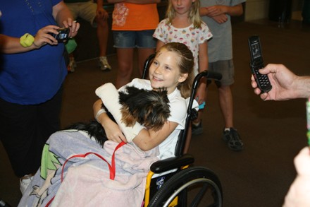 Sparrow Patient Hannah Achenbach, 10, thought she had lost her puppy Chewy forever in a car crash in Delta Township on Sunday.