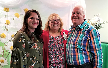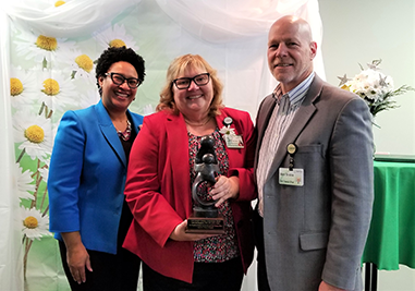Kira Carter-Robertson, (left) Sparrow Senior Vice President of Affiliate Operations, and Mark Brisboe, (right) Sparrow Chief Financial Officer of Community Hospitals, congratulated Beth Daugherty on her DAISY Lifetime Achievement Award.
