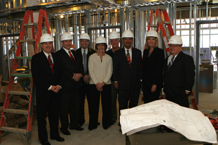 Pictured inside the new facility (left to right) are Sparrow Clinton Hospital Vice President and COO Kevin Price with Right Here Right Now Campaign Steering Committee Members William Brewbaker, Dave Hunt, Liz Nobis, Don Rademacher, SCH President and CEO Ed Bruun, SCH Foundation Committee Chairperson Kerry Sheen-Stock and SCH Foundation Director Peter Shannon.