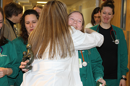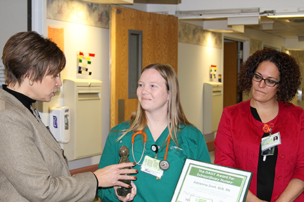 Snell received a certificate, a DAISY pin to wear at work and beautiful serpentine stone sculpture carved by the artists of the Shona Tribe in Zimbabwe. The sculpture depicts the embracing relationship Nurses have with their Patients.