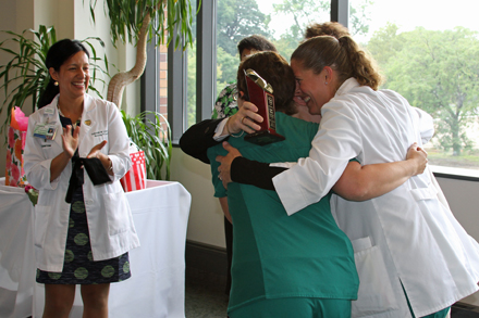 Carol was presented with an award created in her honor recognizing the unit that has gone the longest without a Patient fall. Carol then had the opportunity to present the award to the first recipients, the Critical Care Unit.