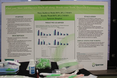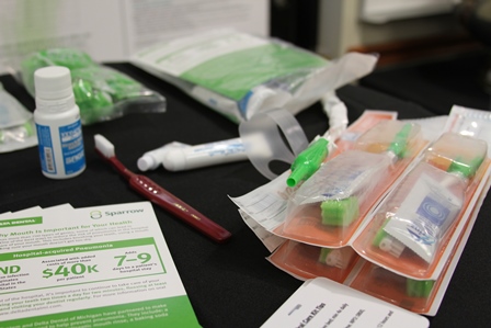 The program was sparked by a joint research project launched by Sparrow Nurses Mary-Kathryn Medei and Brooke Wood, and overseen by Adult Clinical Nurse Specialist Chastity Warren, to improve oral hygiene and reduce cases of hospital-acquired pneumonia (HAP) at Sparrow Hospital.