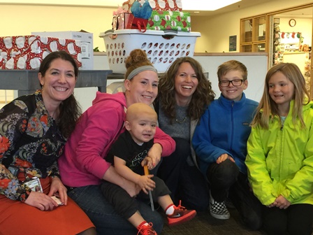 Emiley Brown’s son Oz, 16 months, of Leslie, was sponsored by a group of friends led by Megan Logan of Okemos, who delivered the gifts with son Graham, 12, and daughter Norah, 10. Oz has a twin brother named Jaxton.