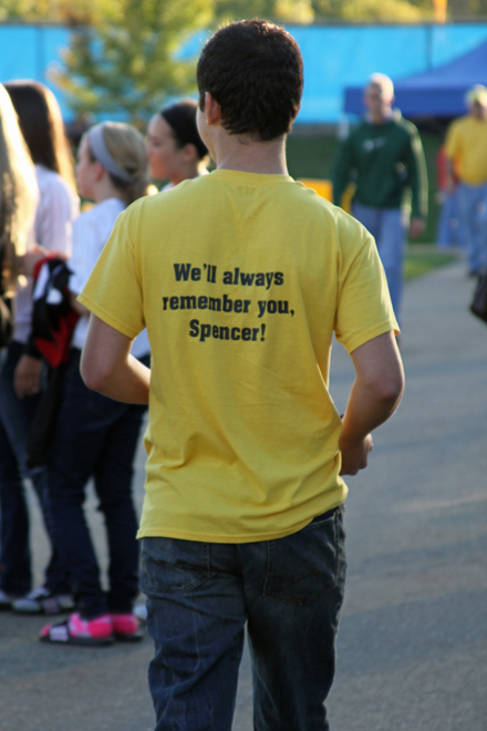 Many students and fans sported yellow shirts in remembrance of Spencer Sowles, a Mason senior last year who passed away in March from testicular cancer after a four year battle with the disease. WLNS did a feature on Spencer during a visit to Sparrow last year when was selected as Homecoming King.