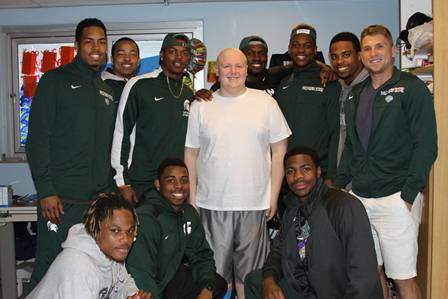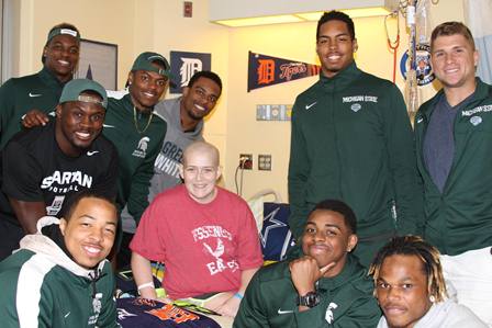 MSU's defensive backs visited Patients on Sparrow's Pediatric floor this afternoon. Thank you Coach Barnett for bringing a fun visit to the kids!