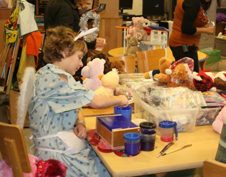 LANSING, Mich. - Young Patients in the Sparrow Children's Center played today in a heap of teddy bears collected during the MSU hockey team's annual Teddy Bear Toss.