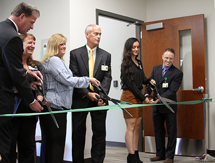 from left: Doug Edema, M.D., Vice President, Sparrow Medical Group; Pam Leiby, Director, Physician Services; Lisa Craft, SMG Williamston Practice Manager; Dave Kruger, Vice President, Sparrow Physician Practice Administration; Dorothea Edmunds, D.O., Physician, SMG Williamston; Donald Setter, D.O., Physician, SMG Williamston