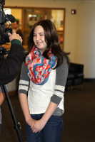 Grace Bushey, 13, of Mason, stopped by the blood drive to show her appreciation (and talk with the local press!)