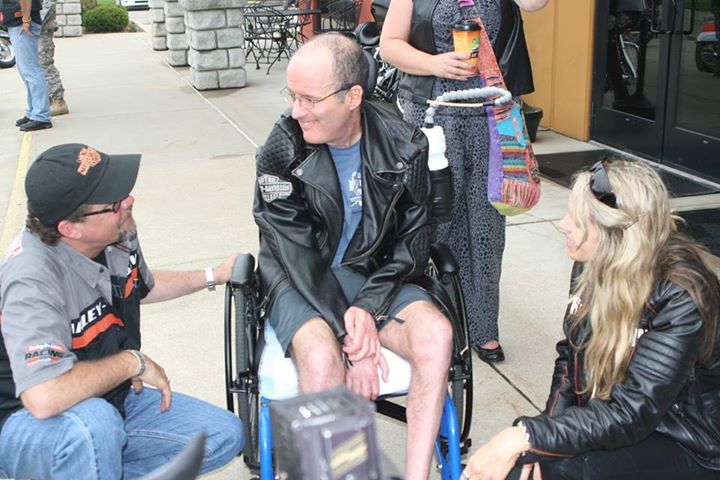 Craig Oster of Haslett has survived amyotropic lateral sclerosis (ALS or "Lou Gehrig's disease") for 19 years and works out religiously at Sparrow Rehabilitation Services. He met this week with two great-grandchildren of the co-founder of Harley-Davidson while promoting a Sept. 28 benefit at the Avenue Cafe in Lansing to raise money for his health care expenses. Sparrow is a co-sponsor of the benefit.