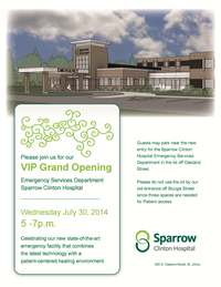 The community will celebrate Sparrow Clinton Hospital's new Emergency Department during its grand opening from 5-7 p.m. on Wednesday, July 30.