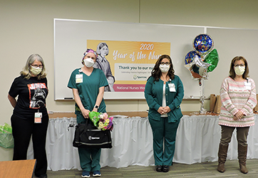 Sparrow Ionia Hospital Nurse of the Year Samantha Fletcher (second from left) is shown with (from left) Chief Nursing Officer Lisa Harris, MSN, RN; Tara Lanz, BSN, RN, Emergency Department manager; and Sparrow Ionia President Linda Reetz, MBA, BSN, RN.