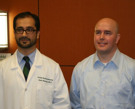 Syed Hussain, M.D., Medical Director of Stroke Services at Sparrow, and patient James Cady