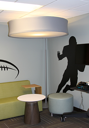 The new space features modern lounge furniture, a flat-screen television, gaming systems, and more in an area designed especially for our older pediatric Patients.