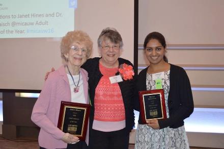 Sixty-year Sparrow Volunteer Janet Hines (left) poses with her Volunteer of the Year award from the Capital Area United Way, along with Jean Paull, President of the Sparrow Women’s Board of Managers, and Shreya Srivastava, who received a Volunteer of the Year award in the teen category.