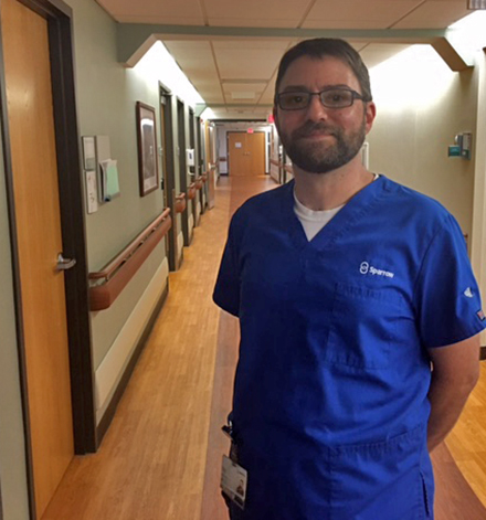 Barry works in the Mary Free Bed at Sparrow unit. He’s been a PCT in Inpatient Rehabilitation for more than 16 years.