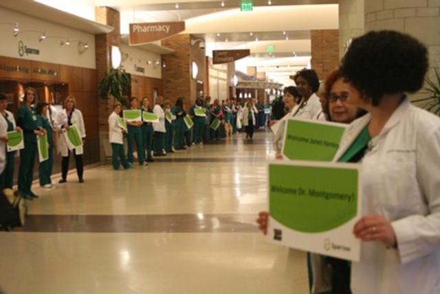 Click here to see our photo album. Hundreds of Caregivers filled the Sparrow Hospital Lobby early this morning to give a warm welcome to appraisers representing