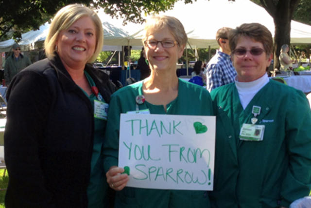 Sparrow Caregivers (from left) Tracy Farthing, Neuro Intensive Care Unit Manager, Becky Hayes, NICU RN, and Doreen Smith, NICU RN joined hundreds of transplant recipients,