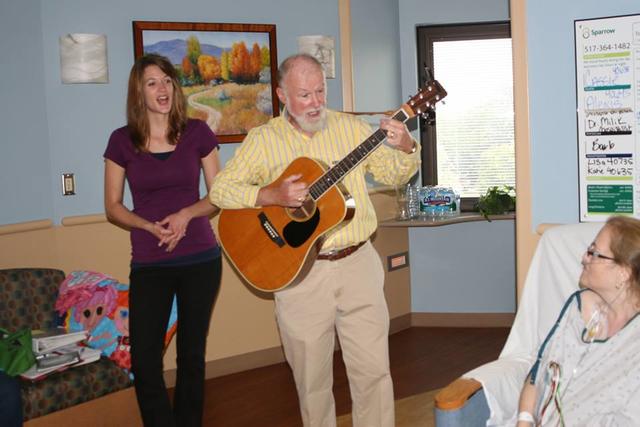 Every Monday evening, Shannon Smith of Lansing and John King of Grand Ledge walk door to door in Sparrow's 5th floor oncology unit and serenade Patients with songs.