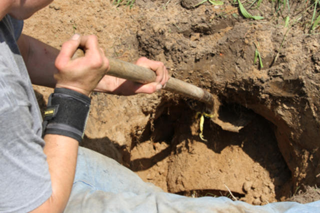 After several failed attempts, using metal detectors and ground probes, PM Environmental of Lansing volunteered its time today to help Sparrow, who recently purchased