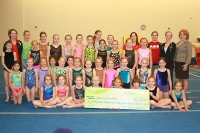 Young gymnasts at Lansing's Red Cedar Gymnastics present a fundraising check for $2,333 to the Sparrow Foundation. Red Cedar Gymnastics of Lansing literally turned