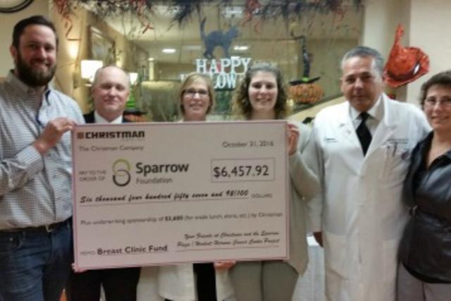 Our friends at The Christman Company donated a generous check to the Sparrow Cancer Center recently. Presenting the check were (from left) Mike Prochazka, Assistant