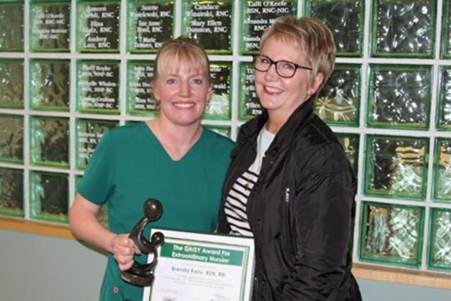 Marci Johnson, BSN, CCM, of St. Johns, left, after receiving her Nurse of the Year honor Sixteen Sparrow Nurses were given special recognition for their quality,