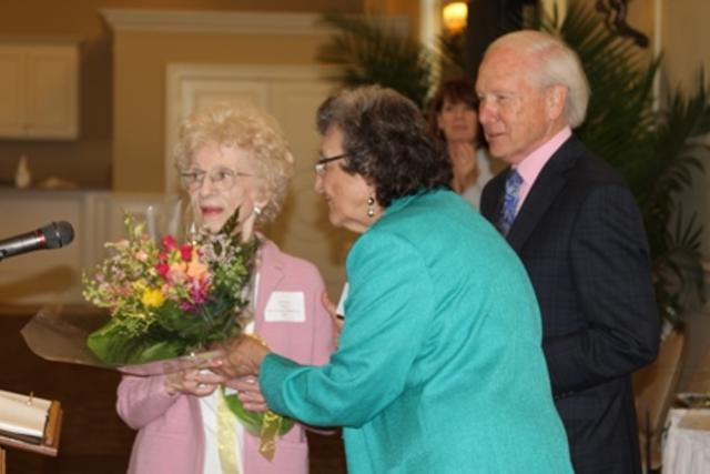 Janet Hines being presented with the 60-year service award by Barbara Given, Ph.D., Chair, Sparrow Board of Directors, and Dennis Swan, Sparrow President and CEO.