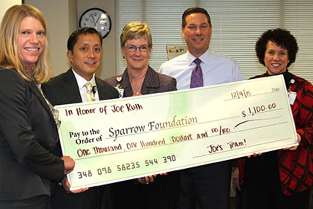 The Leadership team that reports to Joe Ruth, Sparrow’s Executive Vice President and Chief Operating Officer, surprised him with a donation in his honor.